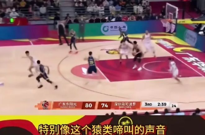 结果在抖音的CBA官方直播间,CBA的官方解说犯病了,他在第三节嘲讽广东主场的球迷喊声是“猿声”,还说“听到了两岸猿声”、“刚才谁要球的声音特别喜感,特别像猿声啼叫”、“感觉误入了花果山”。