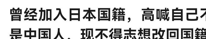新浪新闻:曾经加入日本国籍,高喊自己不是中国人,现不得志想改回国