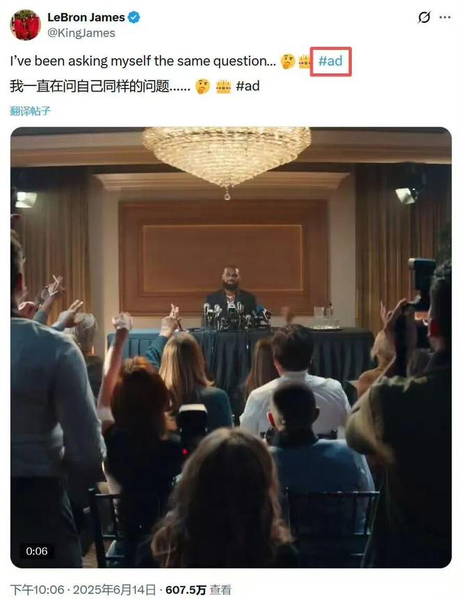 詹姆斯就配合亚马逊拍过一条采访式广告