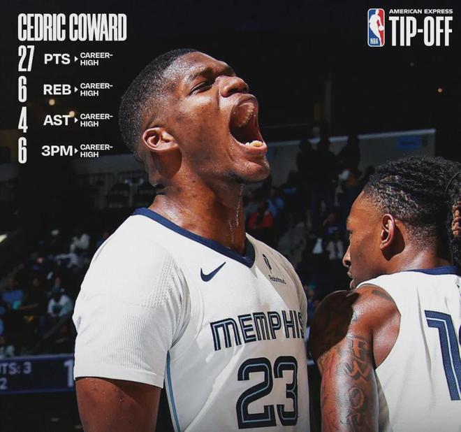 本赛季至今,灰熊新秀&1米96锋卫摇摆人考沃德首战投篮5中5,14分3板1助2断1帽;次战投篮9中5(三分5中2),16分2板2助2断;第三战投篮13中9(三分6中6),27分6板4助1断。