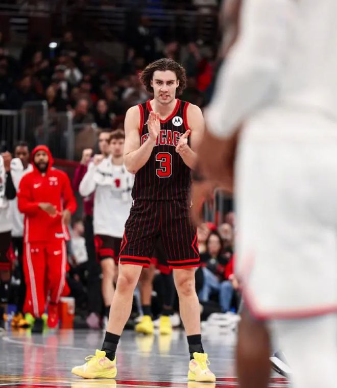 公牛的崛起,核心驱动力来自吉迪的“蜕变”。作为2021年的6号秀,吉迪过去两个赛季虽展现出组织天赋(场均8.1助攻),但投射能力一直是短板(生涯三分命中率31.2%),始终未能成长为合格的球队领袖。而新赛季,吉迪彻底完成“进化”:场均贡献22.2分9.3篮板8.7助攻的准三双数据,三分命中率飙升至41.5%,成为联盟唯一一位“20+9+8”的球员。在与猛龙的比赛中,他狂砍28分12篮板10助攻的三双数据,带领球队在落后15分的情况下完成逆转;对阵老鹰时,他又用关键三分绝杀对手,展现出“大心脏”特质。
