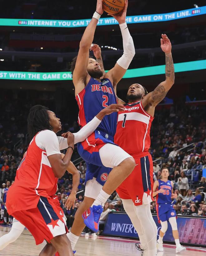 面对仅有康宁汉姆一个进攻发起点在场的活塞,奇才从一开始就制定了让康宁汉姆陷入单打局面的比赛策略,他们要让康宁汉姆的每一次接球和出手都倍加艰难。