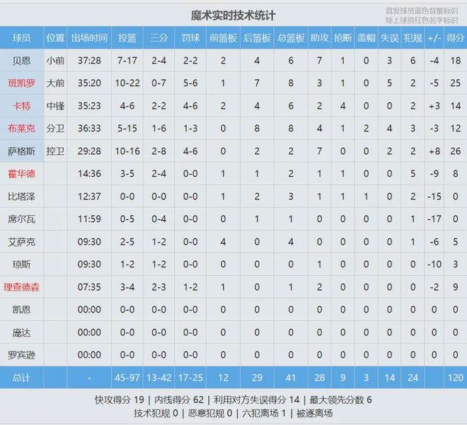 说回今天的比赛,四节比分如下(尼克斯在前):33-36、38-28、29-28、32-28。魔术队内得分王小瓦格纳因伤缺阵,班凯罗砍下25分8板3助5失误,但是三分球只有7中0。魔术表现最好的是萨格斯,16中10得到26分2板7助。