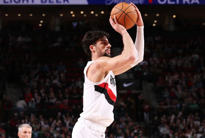 本场比赛中,开拓者的先发控卫德尼-阿夫迪亚(Deni Avdija)的表现并不理想。阿夫迪亚全场出场38分44秒,投篮16中8,三分线外10中3,罚球10中5,得到了24分7篮板10助攻2抢断1盖帽的准三双数据,还有5次失误和1次犯规,正负值为+8。阿夫迪亚在本场比赛中依然是展现出来自己全方位的能力,他的进攻效率稳定,他的得分能力全面,他的突破效率不错,他也具备一定的外线投篮能力,他在传球和组织方面也起到了很好的效果,他在防守端的作用也是值得肯定的。总体来看,他也是在攻防两端都起到了关键的作用。最关键的是,本场比赛阿夫迪亚身边有了进攻效率不错的谢顿-夏普(Shaedon Sharpe),他在进攻端也不需要承担起那么多的压力,他的表现在这种情况下也是明显提升了不少。