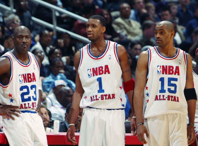 在NBA历史上,确实有让全明星首发的典故,2003年NBA全明星,在球迷投票中乔丹是替补,因为是乔丹最后一届全明星,所以卡特、麦迪等球星等提出要把首发让给乔丹,最终乔丹接受了卡特的礼让,以首发身份打了那一届的全明星。