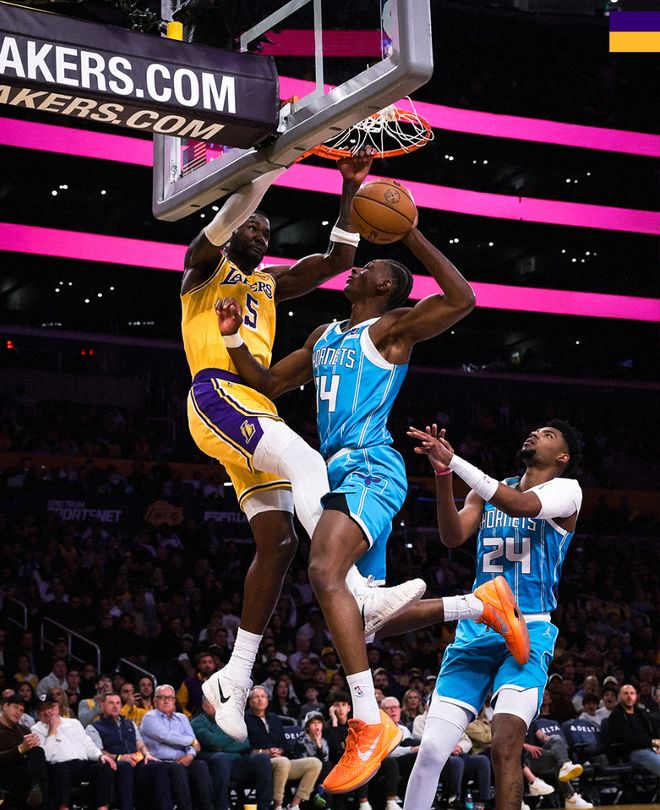次节开场黄蜂很快缩小到4分,詹姆斯一波连续的单打狂打铁,好在老詹一次反击制造犯规,斯玛特也来连串打铁黄蜂已经扳平分差。西恩-詹姆斯三分命中黄蜂反超,米勒三分命中打停湖人,拉拉维亚终结了5分半的运动战进球荒,可黄蜂已经领先到7分,勒布朗三分命中,克努佩尔回应一个三分,半场打完黄蜂64-55反超湖人。