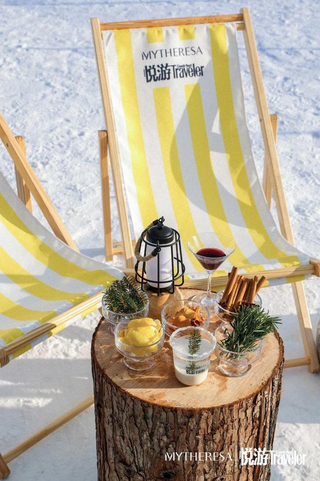 随着明信片的线索被串联,我们正式步入由悦游Condé Nast Traveler与Mytheresa打造的après-ski限时体验空间。日落后,松花湖的天色从湛蓝渐变为深邃的靛蓝,欢聚的场域从开阔的雪场转向温暖的室内。
