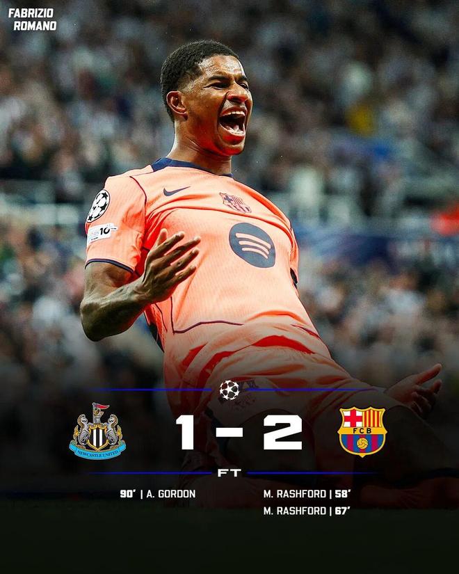 北京时间9月19日凌晨,欧冠联赛阶段第一轮,纽卡斯尔联队主场1-2不敌巴塞罗那。当裁判吹响终场哨音时,巴萨球迷们疯狂呼喊着一个名字——马库斯·拉什福德。他用两个进球改写了