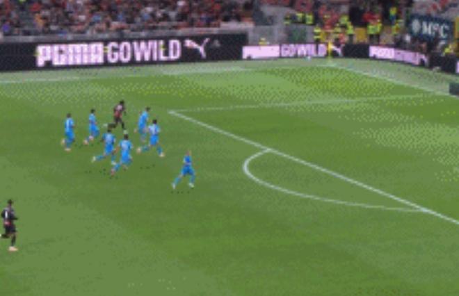 随后的40分钟时间里,少打一人的米兰进行了死守,而那不勒斯则全线压上。第84分钟,名场面出现--米兰后场断球,莱奥带球反击。他一人带球狂奔,7名那不勒斯的球员在身后追赶。最后,莱奥突入禁区,但皮球被拦截。