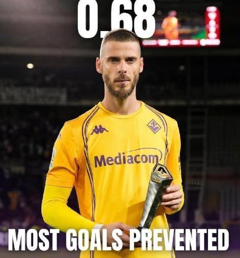上赛季,德赫亚代表佛罗伦萨出战42场,其中完成了11场零封,这个数据更是位居五大联赛所有门将前列。像是上赛季意甲,在佛罗伦萨对阵国米的比赛中,德赫亚完成了8次扑救,其中有4个是封堵对方禁区内的射门,拿到全队最高分。除了传统的门线技术,他过去被诟病的脚下技术也有进步,传球成功率达到69.8%,长传准确率39.7%,创下生涯新高,这些数据都再次证明,德赫亚完全适应现代足球对门将的要求。