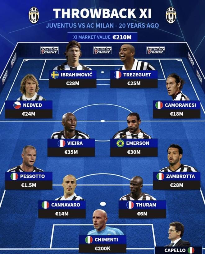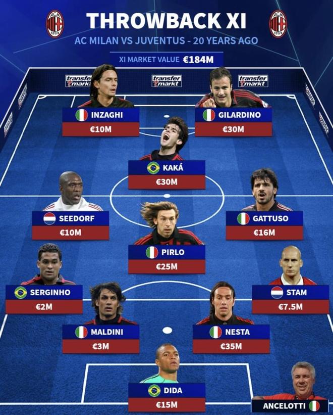 近日,知名足球数据网站德国转会市场的一组回顾数据引发讨论,复盘了2005年10月29意甲第10轮AC米兰对阵尤文图斯的经典较量。回看这场比赛,双方首发的星光密度与成熟度,正好折射出