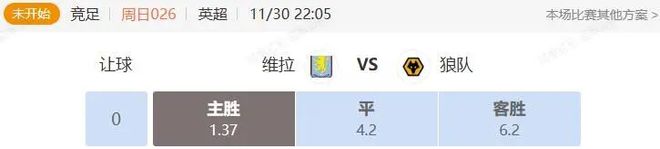 昨晚两场全红,网易红彩今日挑选专家松哥和吴永亮带来英超串关解析,更多精彩方案可下载“网易红彩”App进行查阅!1.专家:松哥竞足 周日026 英超 维拉VS狼队开赛时间:2025-11-30 22