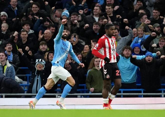 迪亚斯、格瓦迪奥尔、福登各入一球,曼城以3比0的比分战胜桑德兰,将与阿森纳的积分差距缩小为2分。连续负于纽卡斯尔、勒沃库森之后,曼城迅速找回状态,连续战胜了利兹联队、富勒