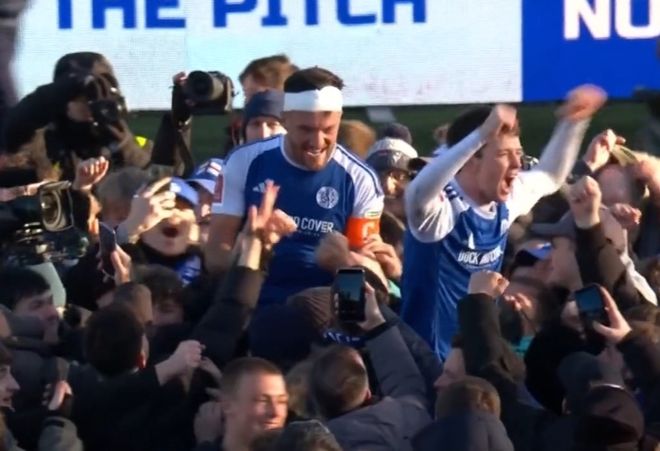 震撼!足总杯45万掀翻2.3亿第6级别黑马球迷冲场狂欢+举起2功臣